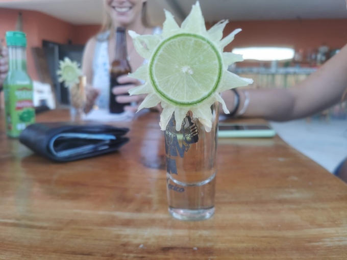 The waiter came around regularly, we were his only customers after all, “Tequila?” He asked. We looked at each other, well why not. Just one. The tequila arrived and turned out to be a double and rather expensive, still it’s nice to treat yourself every now an again.