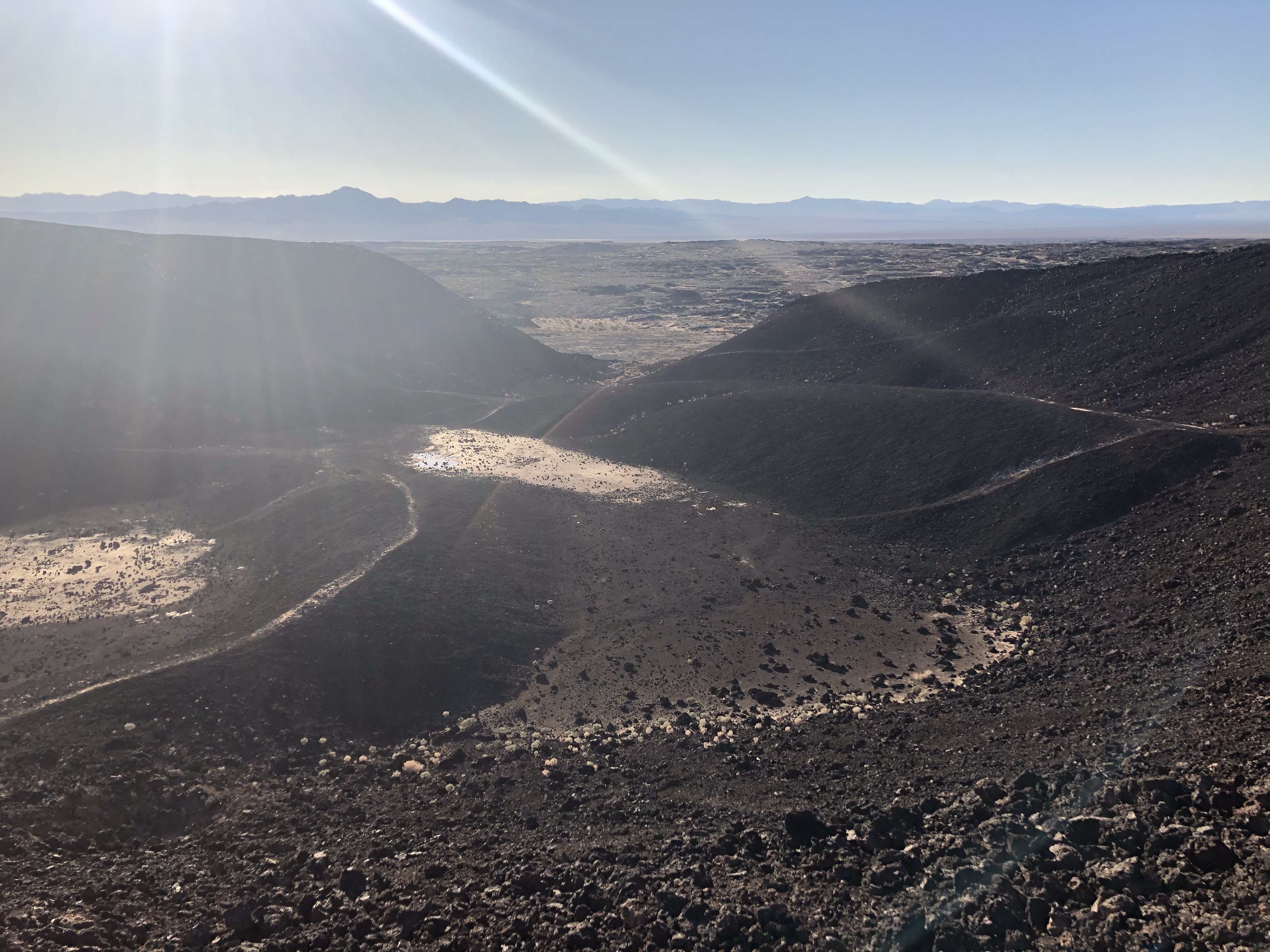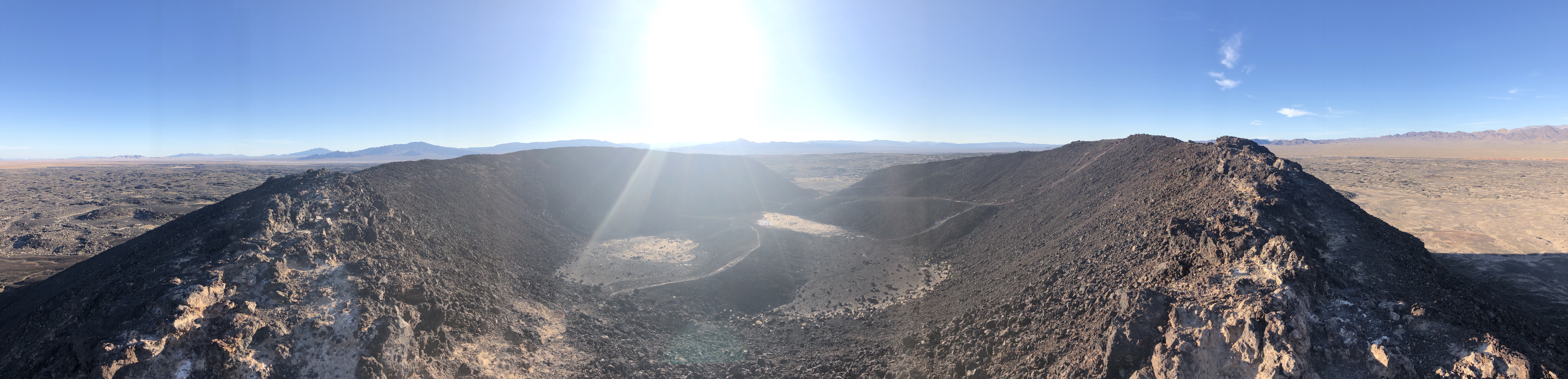 You climb into the crater from one side which is lower than the other, this is the side that it exploded out off.