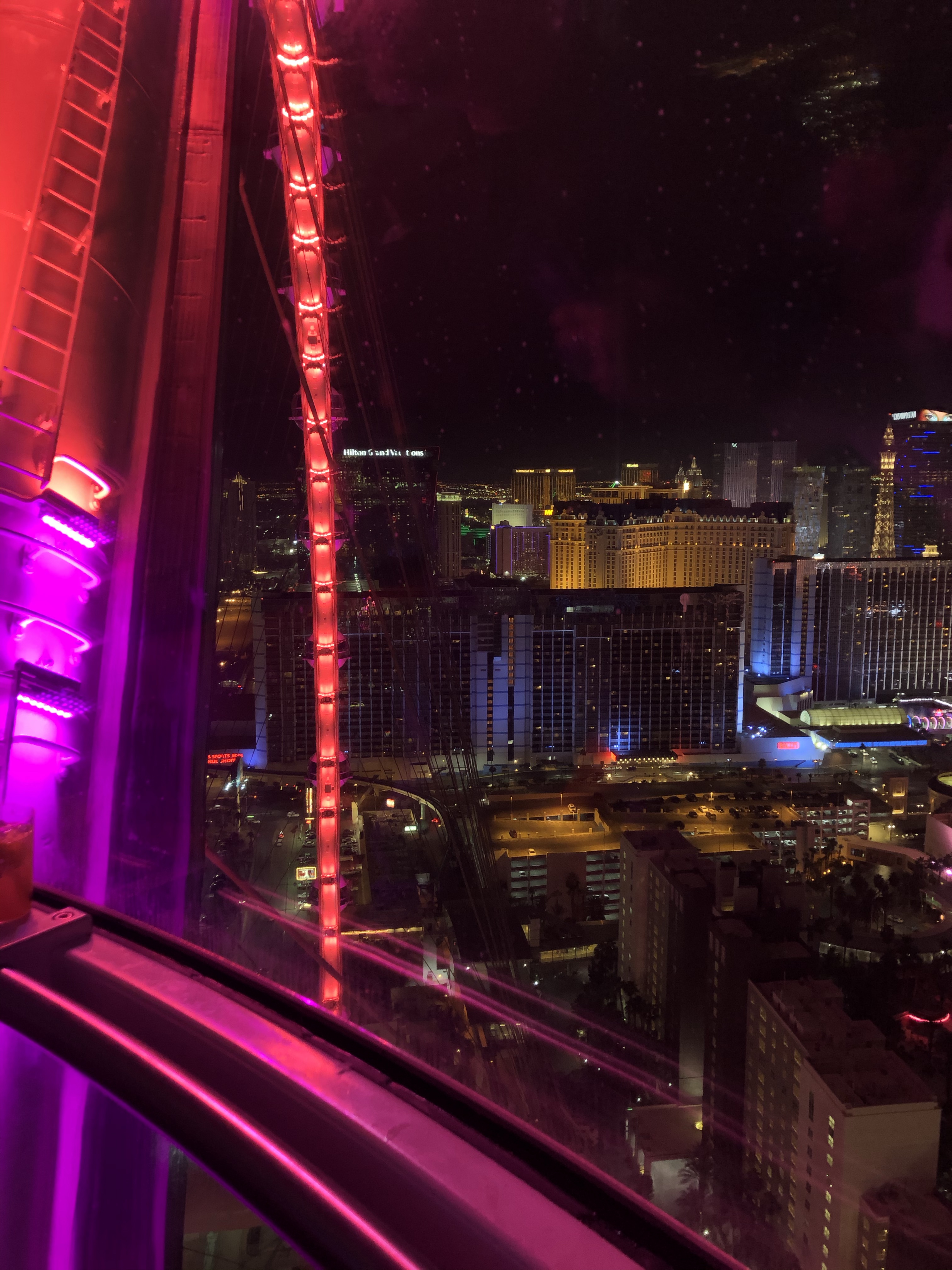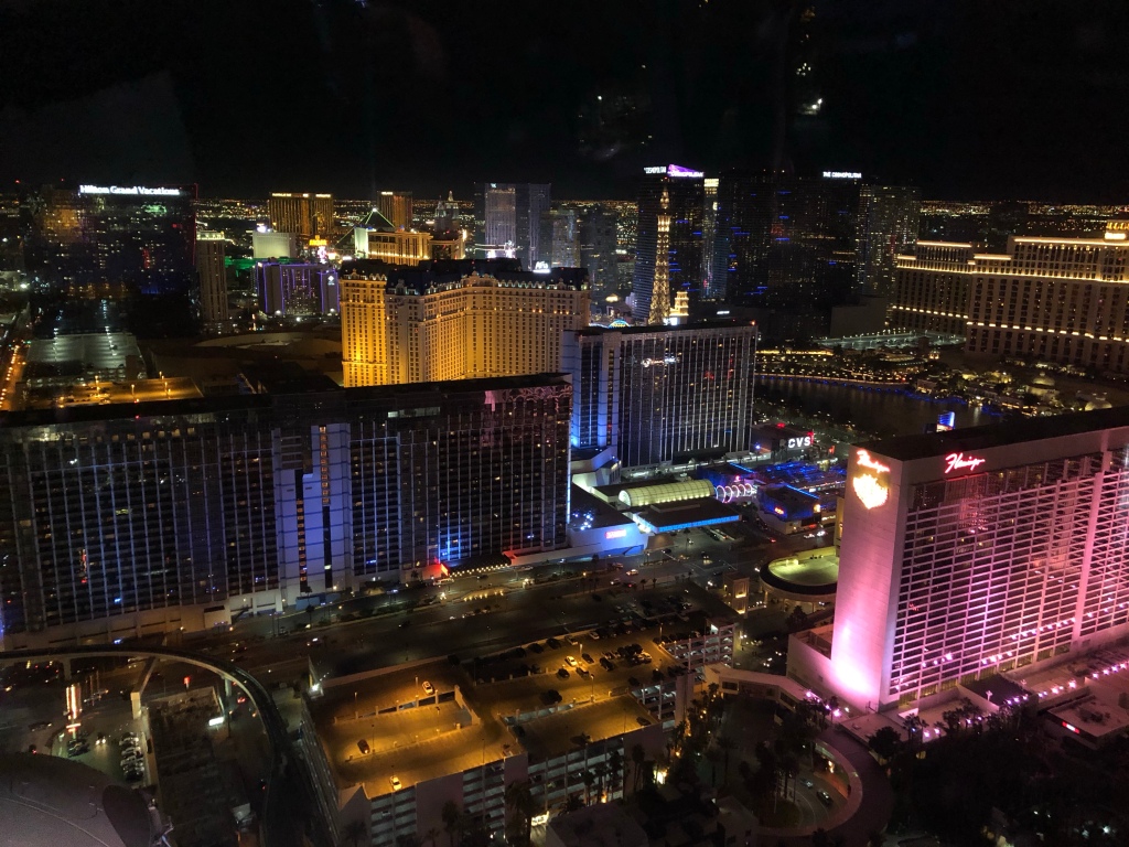 The wheel climbs 550ft above the city and takes 30 minutes too complete one rotation. During this time, we made full use of the open bar, and enjoyed the fantastic views. Vegas lights up at night something amazing!