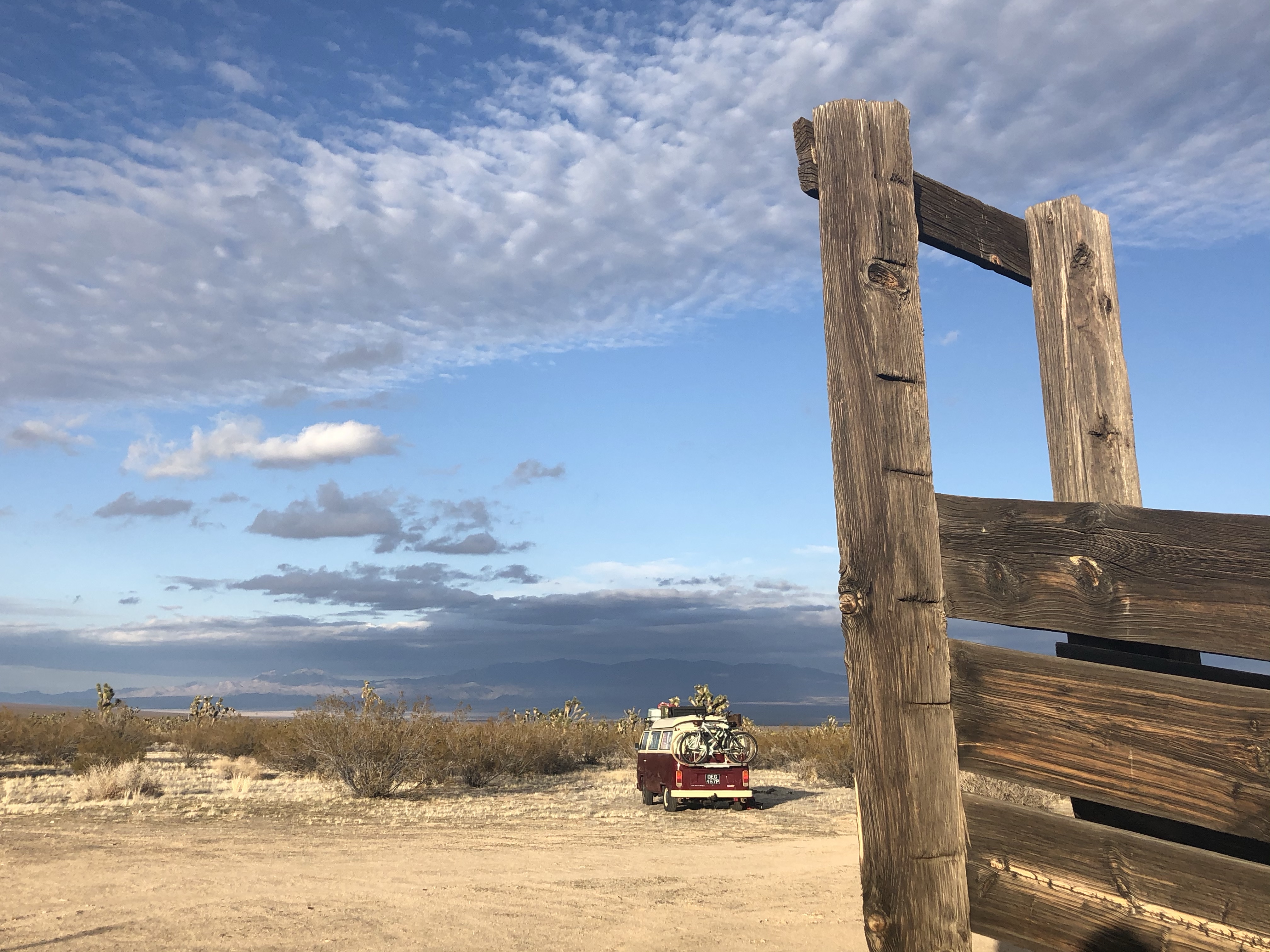 For the first time in a long time, we felt like we didn’t have a deadline to meet. Normally I don’t like big changes to plans, but actually we felt more relaxed. Firstly, knowing that we didn’t have to bomb it up the entire west coast and secondly knowing that we were going somewhere that was much more suited to living in a VW dub weather-wise. This also meant we could visited Joshua Tree National Park and San Diego, both of which we had missed on our first time round. With no need to rush, we drove towards the Mojave Desert, and stopped up after only around an hour and a half on a large flat area beside a dirt road.