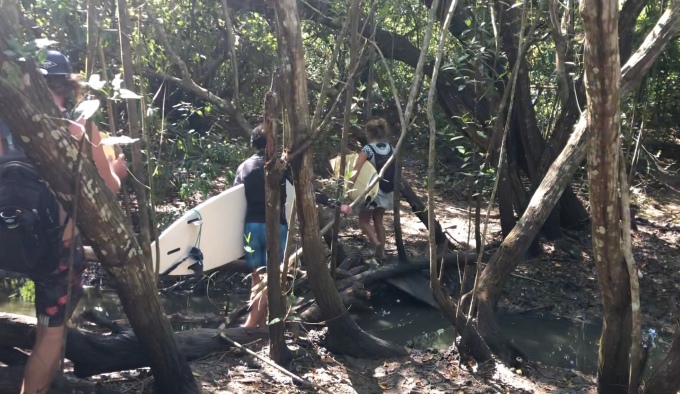 We met several surfers coming the other way, negotiating their longboards around low tree branches.