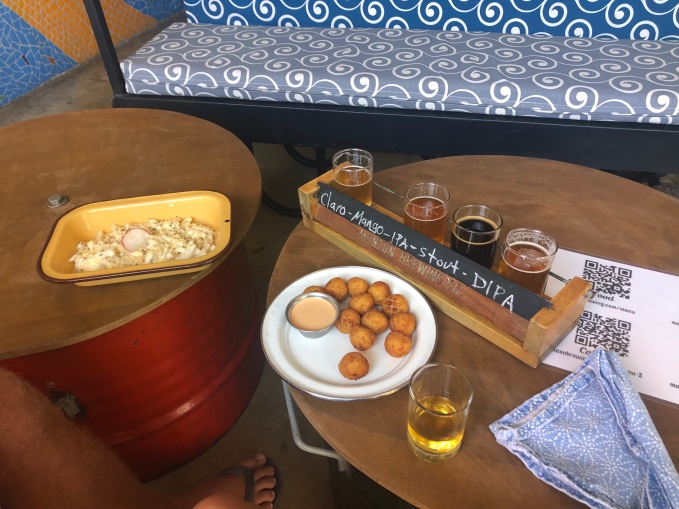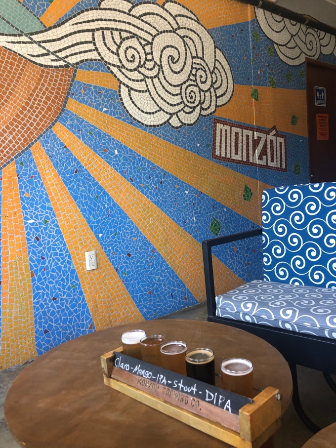 After finding some parking in the very busy downtown, we arrived at Monzon. We sat upstairs as the only guest and tried a flight, which we followed up with some snacks and a pint. It was very nice beer, we particularly liked the mango sour and decided to come back in the morning and fill up our growler.