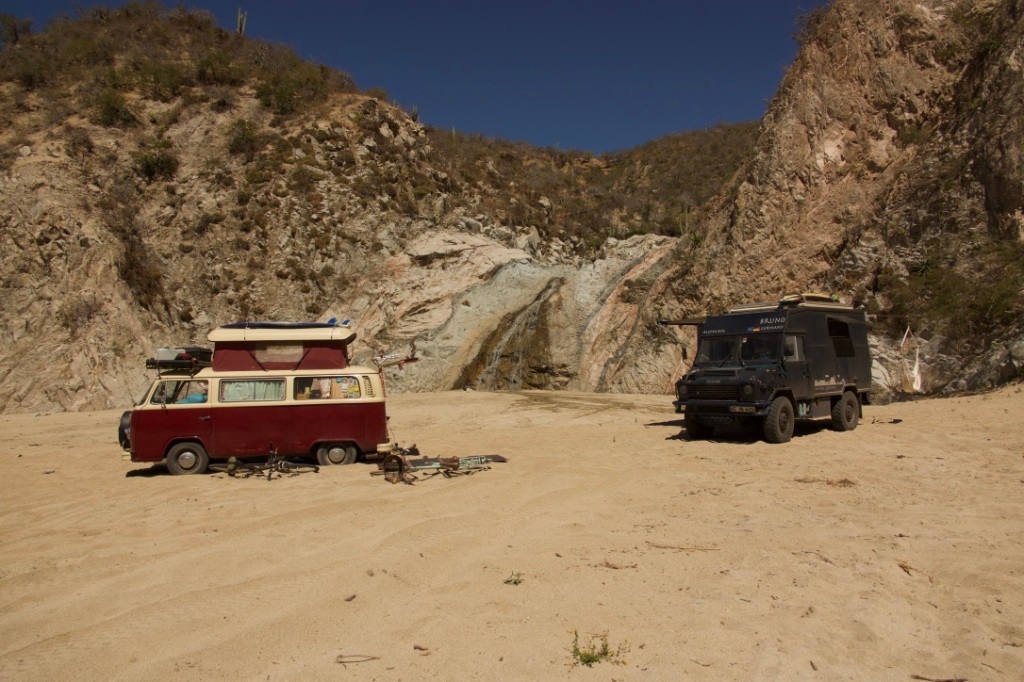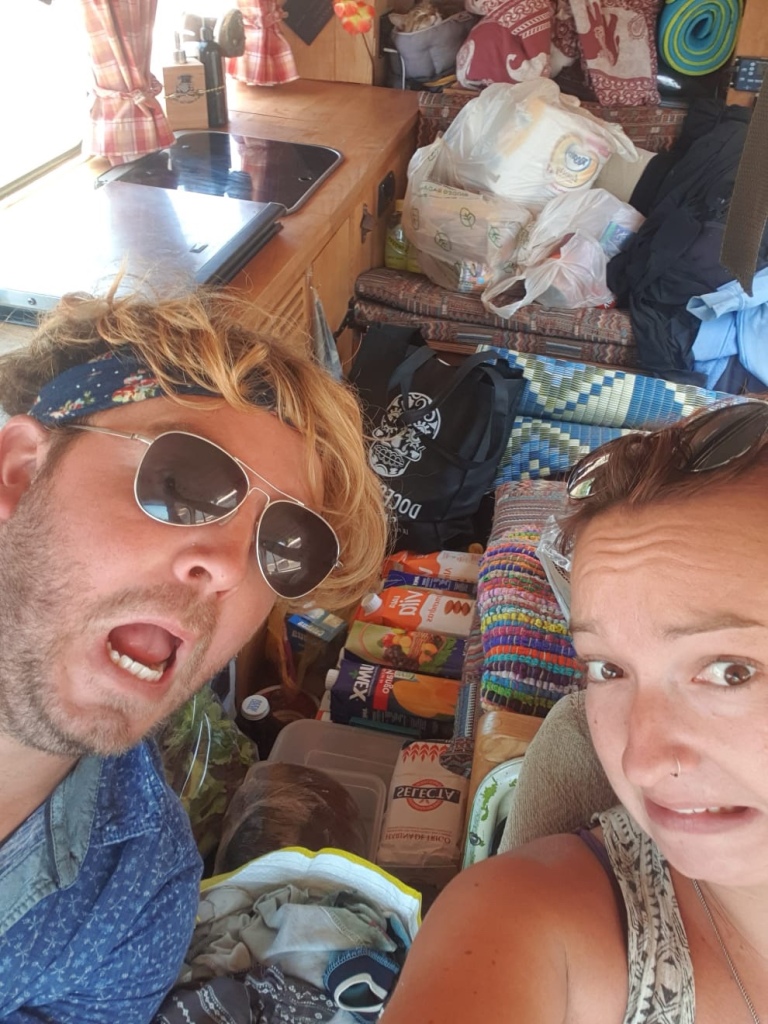We stopped off at a couple more shops and picked up the last remaining things that we needed to last us for a while. We finally got ourselves a garrafón of water, which are the containers that everyone uses here for their drinking water. Now with the means to make icing for lee’s cake, and 40L of drinking water, I figured we could definitely last for two weeks off grid. All that was left was to fill up with fuel, and non-potable water. Happily, the fuel station not only had a petrol pump and a diesel pump, but also a tap, which we used to fill up our tanks for free. Finally, we all set off, our van stocked to ridiculous levels.