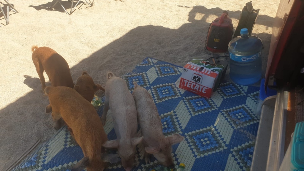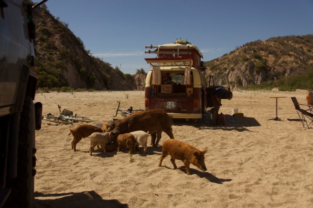 Once again the back of Ruby was unloaded and we stored our copious amount of food in boxes outside. It wasn’t too long before a large herd of pigs turned up to drink from the waterfall, and were particularly excited to find our food boxes. They didn’t quite figure out opening the lid, but we made sure that they were well and truly stuffed under the van for future visits.