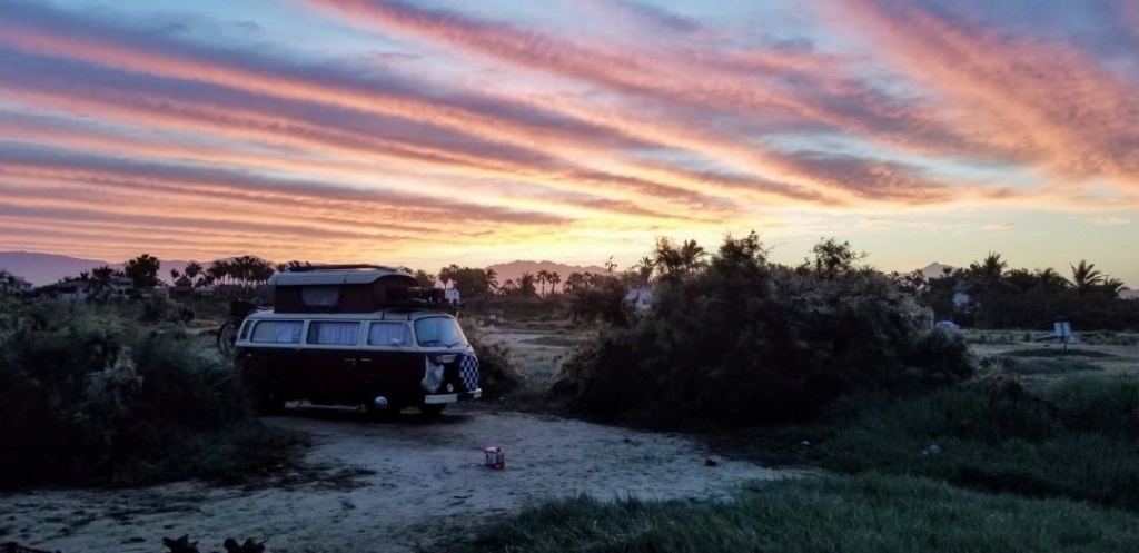 We drove back to our little parking spot on San Pedrito, attempt to roll in on ‘stealth mode’ so as not to disturb Shane too much. Always up a lot earlier than us, he took this awesome picture of the morning sunrise.