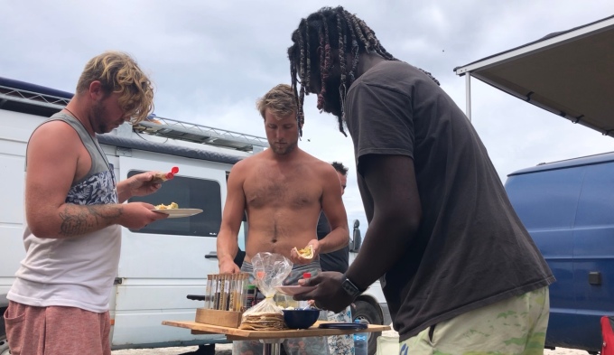 Soon the food was gone and as seamlessly as all the ingredients appeared they are tidied back. Us vanlifers are definitely good at unpacking and repacking, we do it every day. I wash up, someone else cleans our table for us and someone else deals with chucking the rubbish in the wasp infested bin. It was truly a team effort, with special thanks to Corey for the main event, the fish.