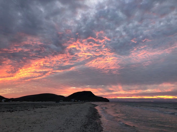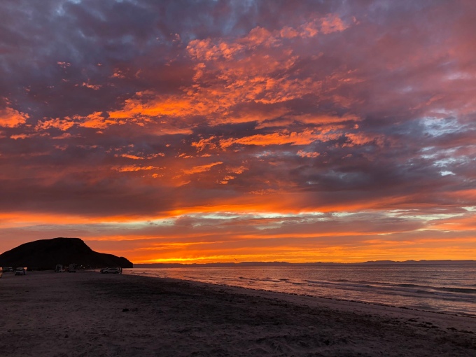 There was another VanLife gathering scheduled for that weekend on Playa Tecolote, and we debated whether we would hang around till then. Still, we were enjoying spending time with our group and so we followed suit when everyone else packed up to head out of La Paz, and followed. We stopped off for a few errands on the way, in particular our compost toilet needed attention. We had spent the morning cleaning it out, but now we need a new composting medium as we had run out of coconut coire. I knew that Home Depot in the US sells this, and La Paz is one of the few places in Baja that has one of these shops. Unfortunately for us, the Mexican store does not stock this stuff and in the end the closest thing we could find that we thought might work was tobacco plant. We reckoned it was no good using something that was already composted as this kind of defeats the object, so we will see if we made the right decision with that one! After stocking up on food supplies at the first hypermarket we had been to in a while, we were ready to hit the beach again.