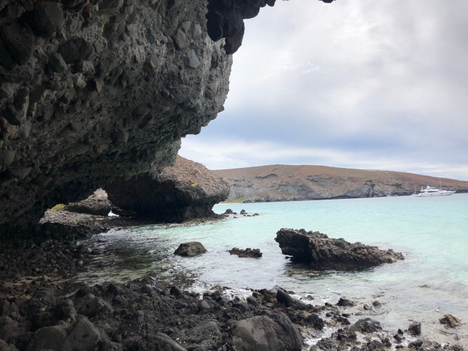 The path kept going around the hillside, and you then reach another beach which is even nicer. Again there wasn’t many people, a few boat tours were there and some very expensive yachts were moored off shore. We continued to the end, and then decided to walk on the rocks around the headland. The waves have undercut the rocks of the cliff, so at low tide you can walk on the rocks around the base of the cliff.