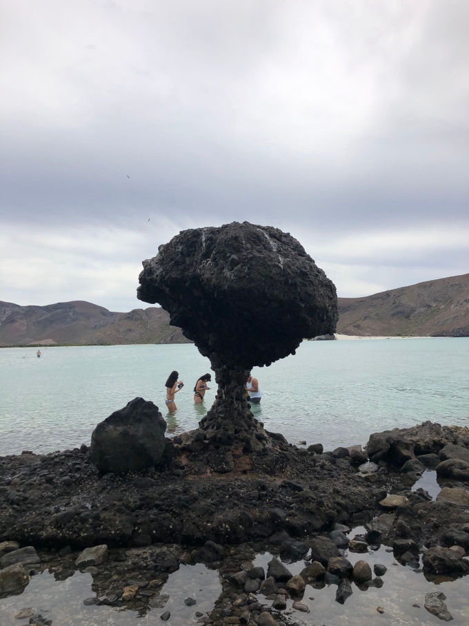 By the looks of it you could also just walk around the point in the water as it’s only a couple of foot deep. At the end of the point is the Balandra Mushroom Rock. The reason for its name obvious, it’s a very popular photo opportunity for the locals and it was hard to get a picture with this many people in it, let along no one else.