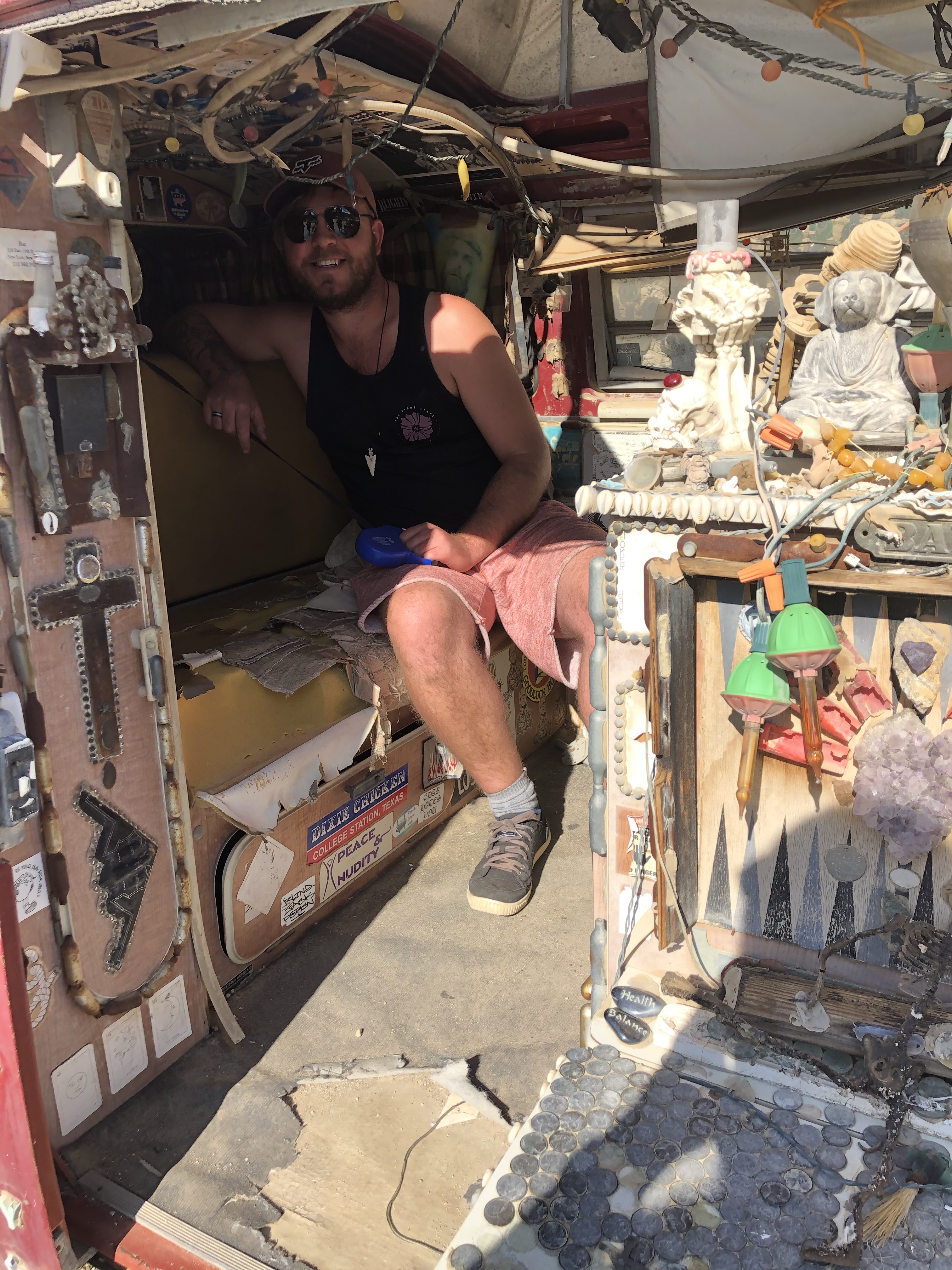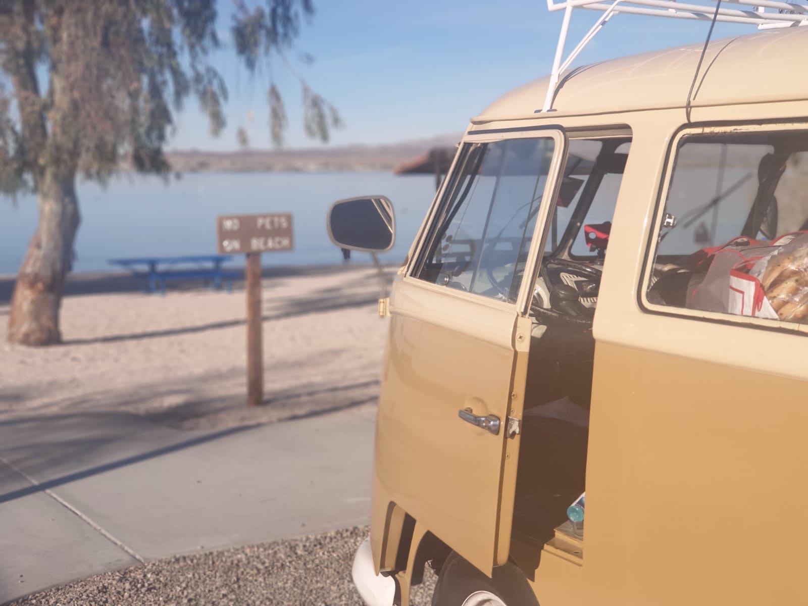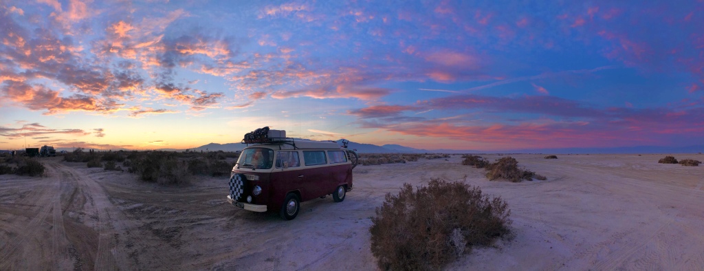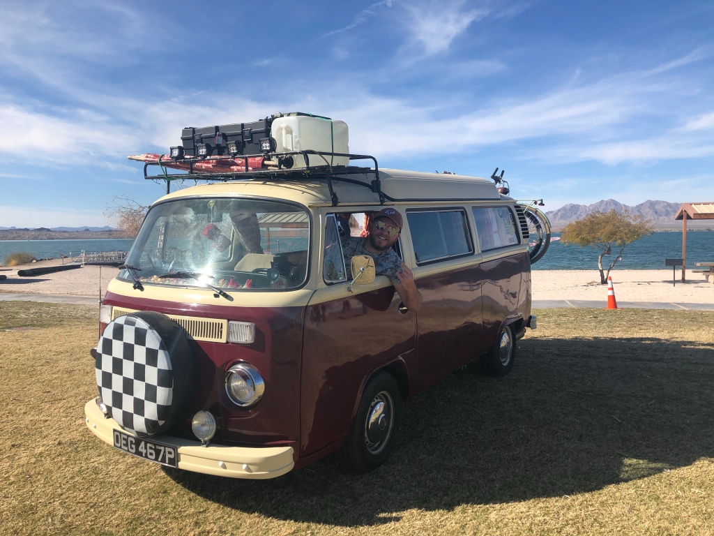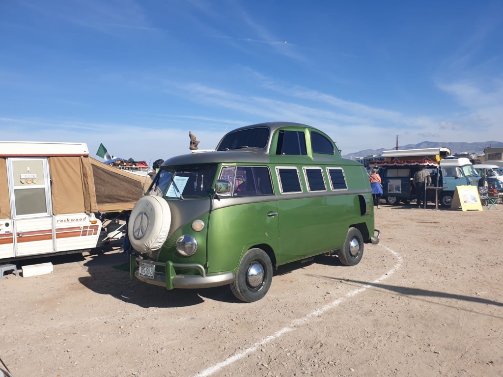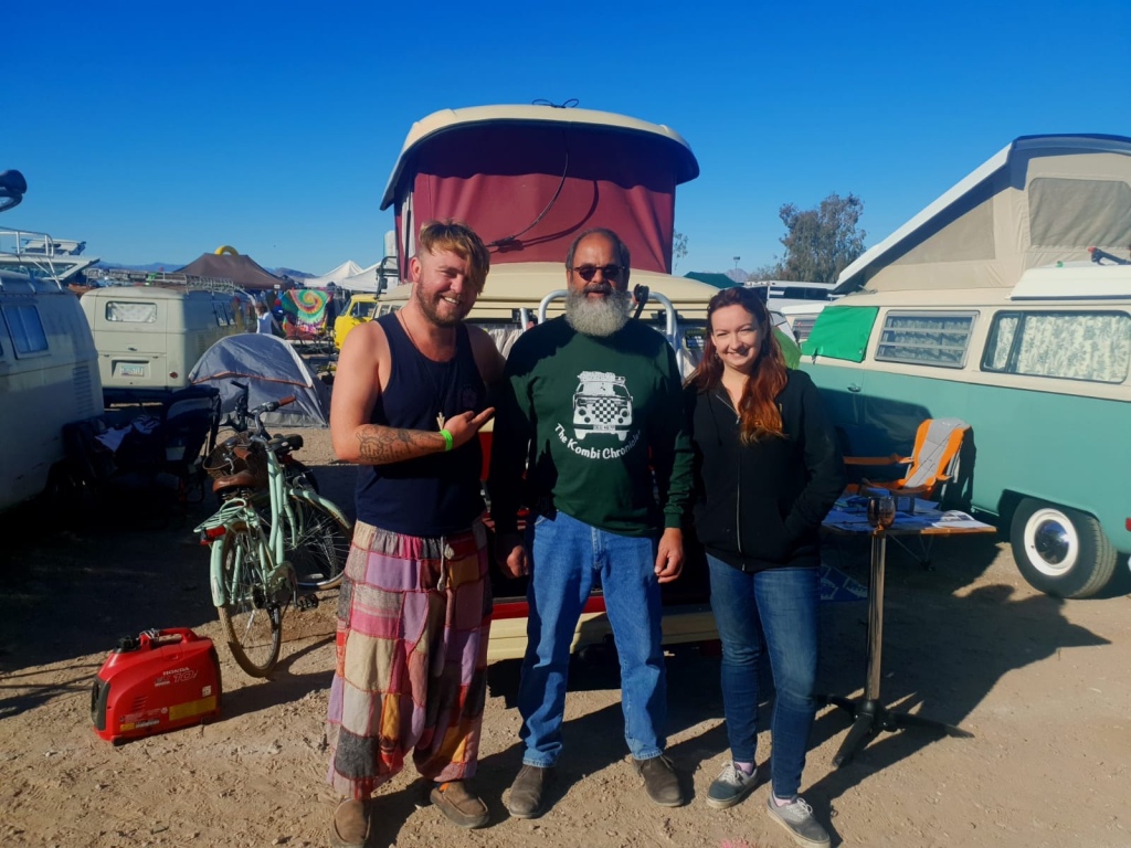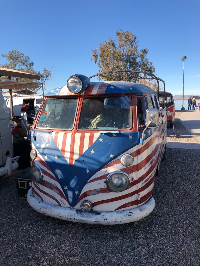 After that we drove on for several hours without much happening. We stopped off to get fuel once we had crossed back into Arizona as it was so much cheaper, and then kept going on past Quartzite towards Lake Havasu. We arrived there in the dark and after a bit of confusion as there wasn’t really any signs, we found the entrance. The people on the gate recognized us from our interview with Hot VW’s. They remembered our names and were shaking our hands, welcoming us to the festival. Before we knew it they waived us through the gates and we realised we had been let in for free!