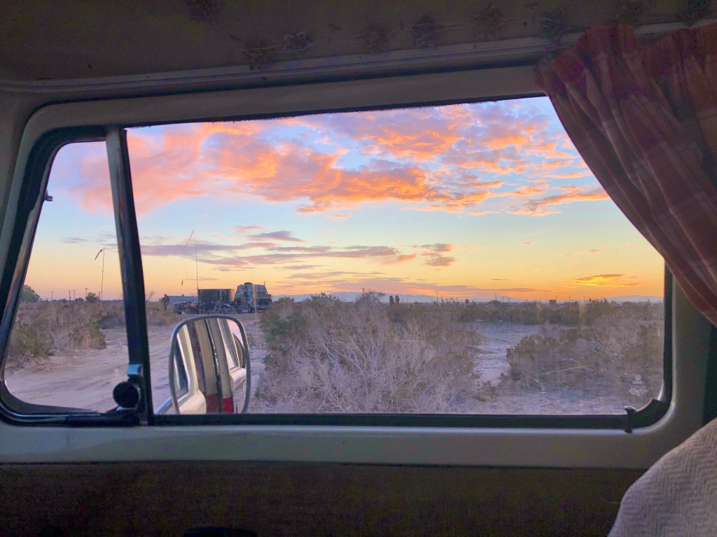 As it started to go dark we went on a cat hunt to go and find Aimee who was definitely enjoying the freedom of the beach after being cooped up in a city. The van next to us warned of coyotes in the area, and we definitely didn’t want to leave her outside at night!