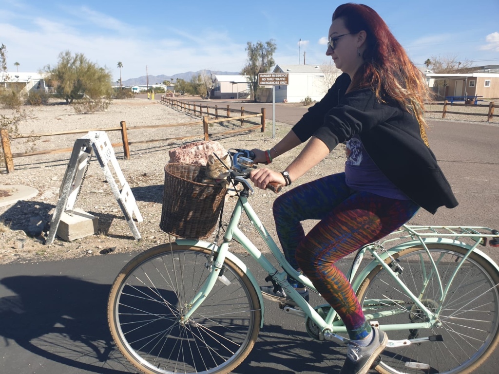 It’s been a while since we managed to find those elusive butane cylinder in Walmart, so we also went for a short bike ride down to West Marine to try and get some more. It takes a pretty long time to make our morning cup of tea if the Wallas hasn’t been on overnight, so we normally use our portable little gas ring. The only problem is that the cylinder is uses are not that easy to find, Walmart stocks them, but more than half the time you try to buy them you are greeted by a space on the shelf where they should be. We decided to take Aimee with us for a change of scenery, but she was in a pretty bad mood and we thought she might like it. She did not. Luckily it was only a short distance away and we did actually managed to get gas, so the pissed of kitten was not for nothing.