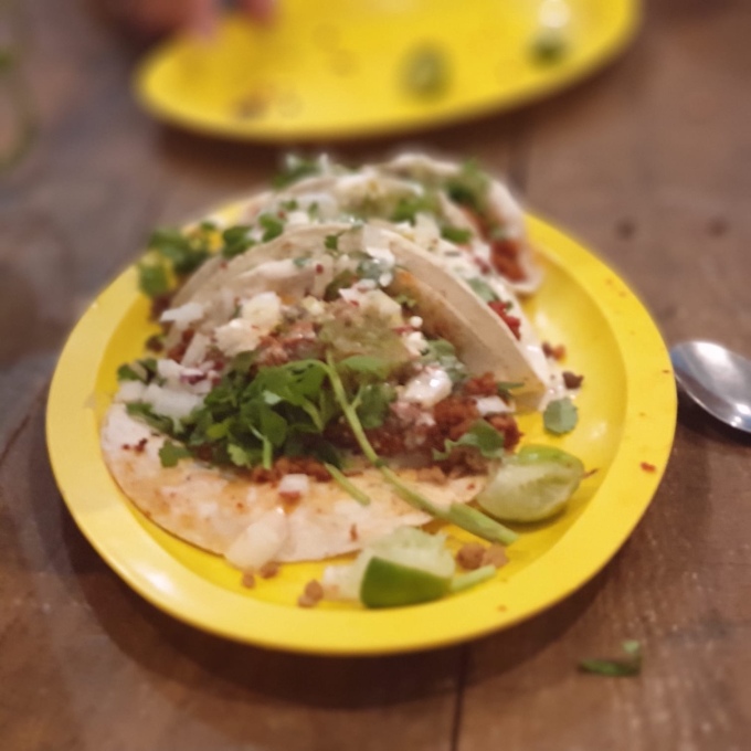The cheapest tacos so far, these were only 15mxp each, so Lee and I ordered one of each to try them all.