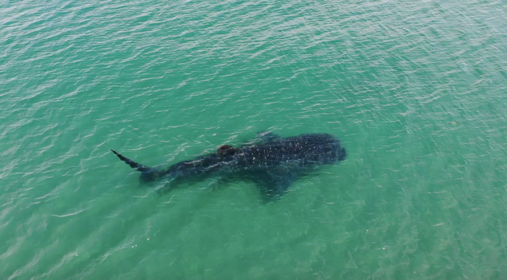We learnt later that there was only 14 boats allowed out on the water, and that these then had to take it in turns to locate a whale shark, before returning. As a nature reserve, there was some pretty strict rules in place. There was nothing however to saw we couldn’t swim out ourselves. In hindsight, we should have go right there and then when we spotted on the drone, but in actual fact we didn’t go until later. By this point the water was a lot choppier, and Steve appeared to have got sand in his gimbal which was stopping it from working. After managing to get the sand out, we flew him out again to see the direction we should head in, but this time we had no luck. We decided to paddle out anyway and see if we got lucky. The two of us trying to share and paddle on one surf board was not a success, so as the stronger swimmer I ended up swimming, while Lee used the board. We bobbed around in the ocean for a while with no success, and limited visibility underwater before heading back in. If nothing else, it was a good swim, the water quite a pleasant temperature.