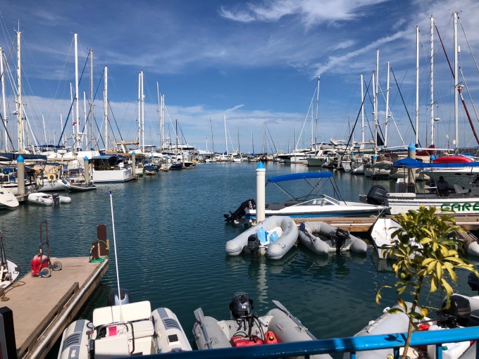 Instead, we settled for the exciting activity of doing our washing. There was a laundrette at the marina, so we got our clothes ready and walked down. We planned to sit in the café and use the Wi-Fi while we waited. The marina itself was quite pretty, and after an hour or so we saw the other leave on the boat ready to go out on their tour and we also watched some fairly big swimming on the pontoon we were sat on.