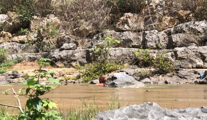 Despite the fact that it was a little cloudy, it was still very hot. We stopped at a particularly shallow point in the river for a cool off. I didn't particularly want to leave my spot and Lee had found his happy place too.