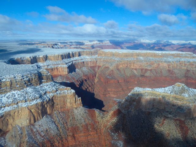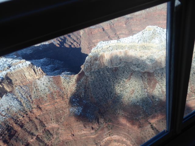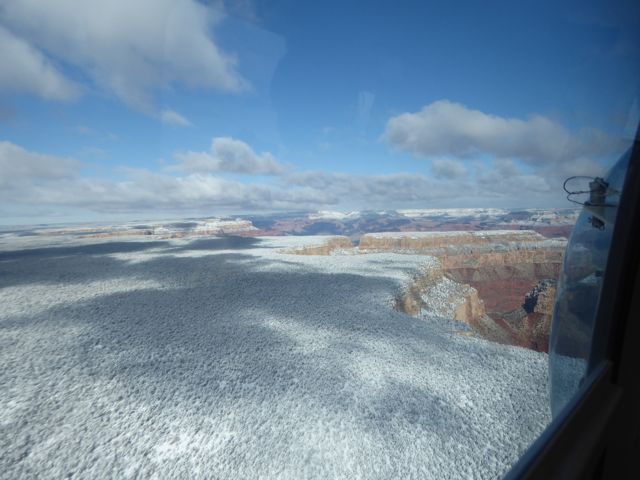 It wasn’t much warmer in there than outside, so in a way it was good that it was a bit of a tight fit! 10 minutes before our scheduled time, we were in the air, heading out to the Grand Canyon.