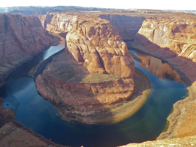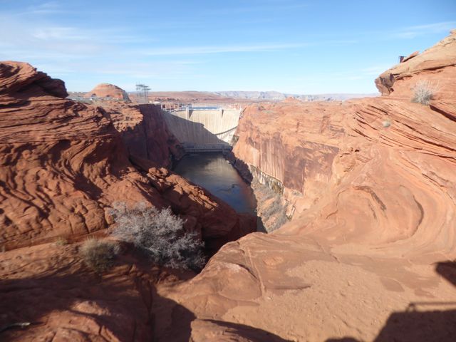 Unfortunately, due to our slow start, we had to cut the end off our walk in order to make it back for 2pm. On the way, my parents phoned to say they’d go on ahead and meet us there, it was only a short drive down the road after all. Back at the van we drove around to fill up our drinking water up at a point we had spotted along the way, before heading towards Horseshoe Bend. Due to a blonde moment, we ended up at the view for Lake Powell’s dam instead. Still it was worth the stop.
