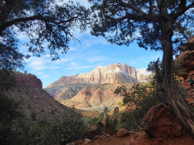 When morning came, Aimee was ecstatic to be out and running around. I wonder if she remembered the place. We met my up with parents in the visitor centre after only a comparatively short queue to get into this national park. The advantage of completing this trail was that you didn’t have to get the shuttle bus as the walk starts from the car park. Having got the bus twice before, it was a rather lengthy affair, adding a good hour onto actually being able to start your walk. Compared to our previous two days in Zion, this one definitely had the best weather and we set off the sunshine.