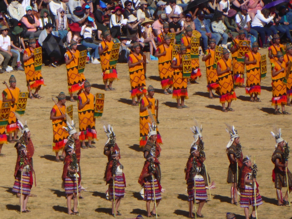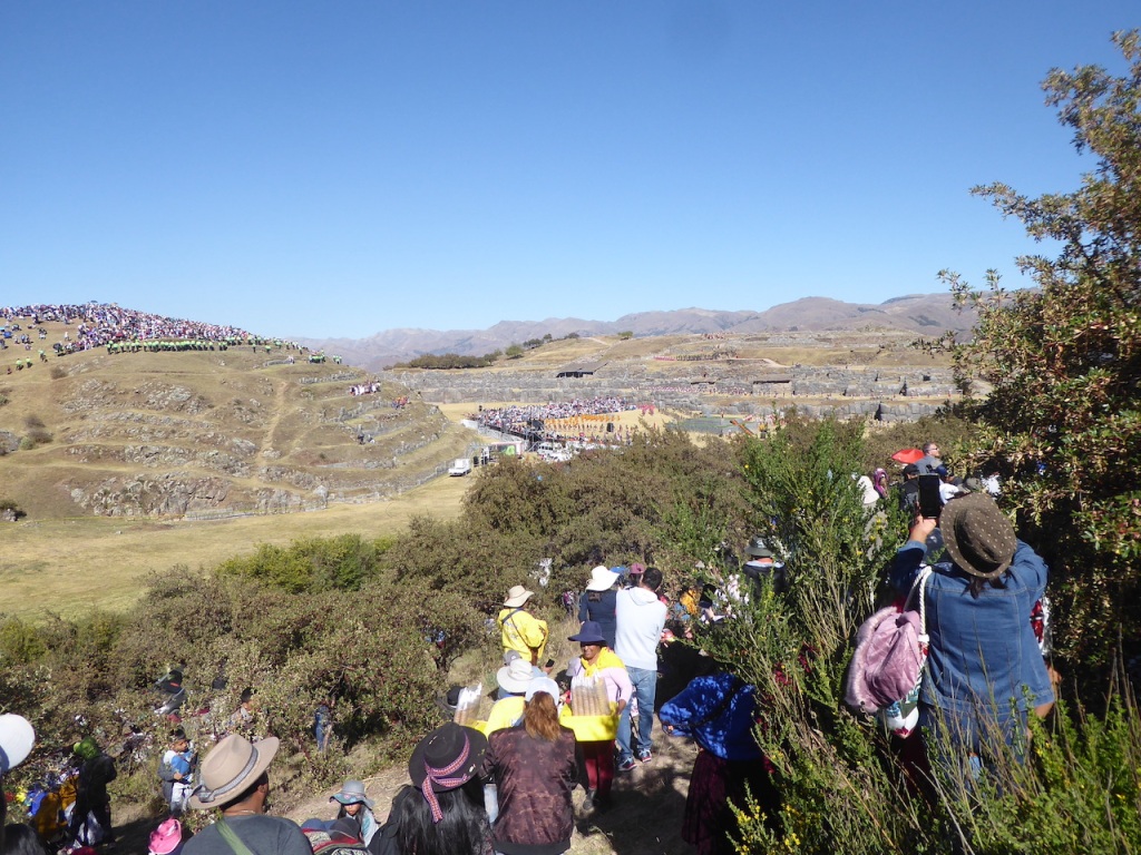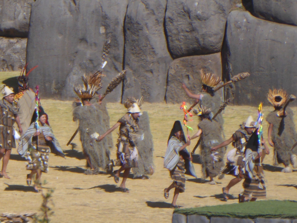 Eventually, things started happening. Costumed people starting arriving over the top of the ruins. There was a bit of a commentary, with the occasional sentence in English, but they soon gave up on that. A helpful local next to us explained what some of the costumes represented, as we watched from afar.