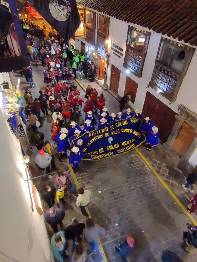 From the balcony of Cerveceria del Valle Sagrado, we watched the parade on the street below.