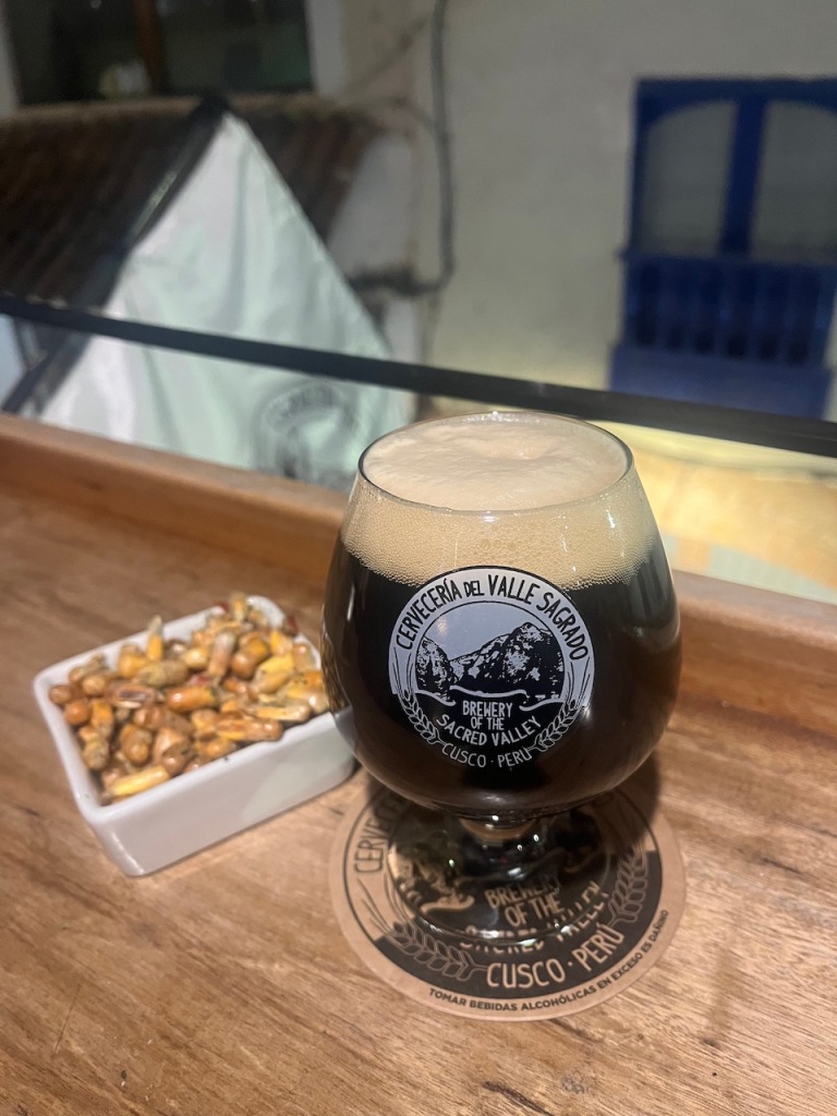 We hadn’t been there too long, before our friends Kartik and Sim came. They said it was getting too rowdy on their hill and they weren’t enjoying it anymore, so they too had left. Now the large police presence became obvious. When they left to get back to their hostel where they were staying with their friends, we headed out into town. With it being quite touristy, Cusco has a lot of fun looking places to eat and drink. Lee was eager to get to the back to the nearest microbrewery. With so many to choose from we headed to Cholo’s Brewpub first. They had a rather disappointing list of drinks however and we moved onto the very posh Jacob’s bar and brewery where we enjoyed two rather nice beers. Lee had been in contact with another overlanding couple, Brodie and David, and so we met back at the first bar to meet them for a drink. As the beer menu was still disappointing, we headed back to Molly’s Irish bar we had ended up in the night before where we spent the evening with them enjoying the stout and a pizza.