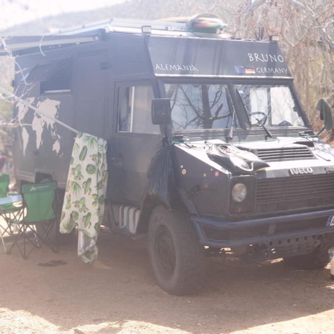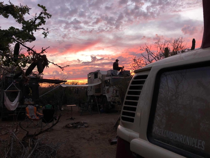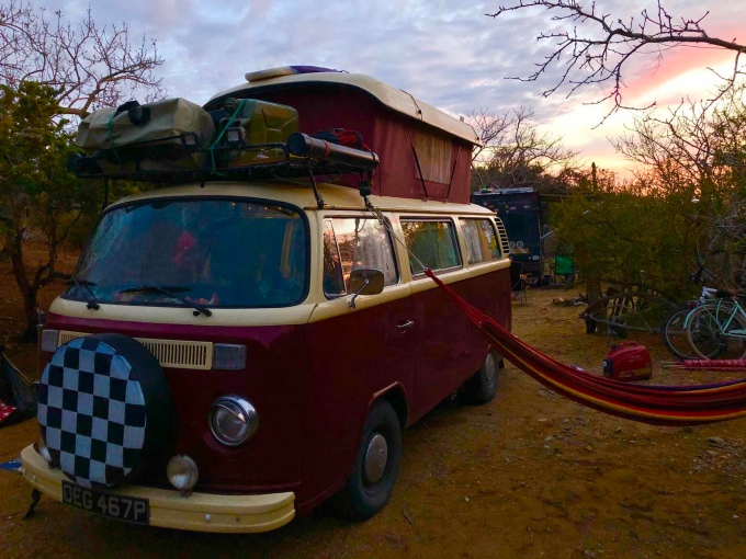 We tucked ourselves away at one end, while the two bigger rigs took the main space, spreading their awnings out over the camp. We set about unloading ruby, something we were even better at than normal. We piled up our vast food boxes under the van, took the bikes off the back and set up the hammock. We had been told the price here was either 200mxp a night or 1000mxp a week, which is about £34. Fed up with being bounced around and constantly hassled by the police, we were happy to take a week of guaranteed hassle free camping and regroup our thoughts.