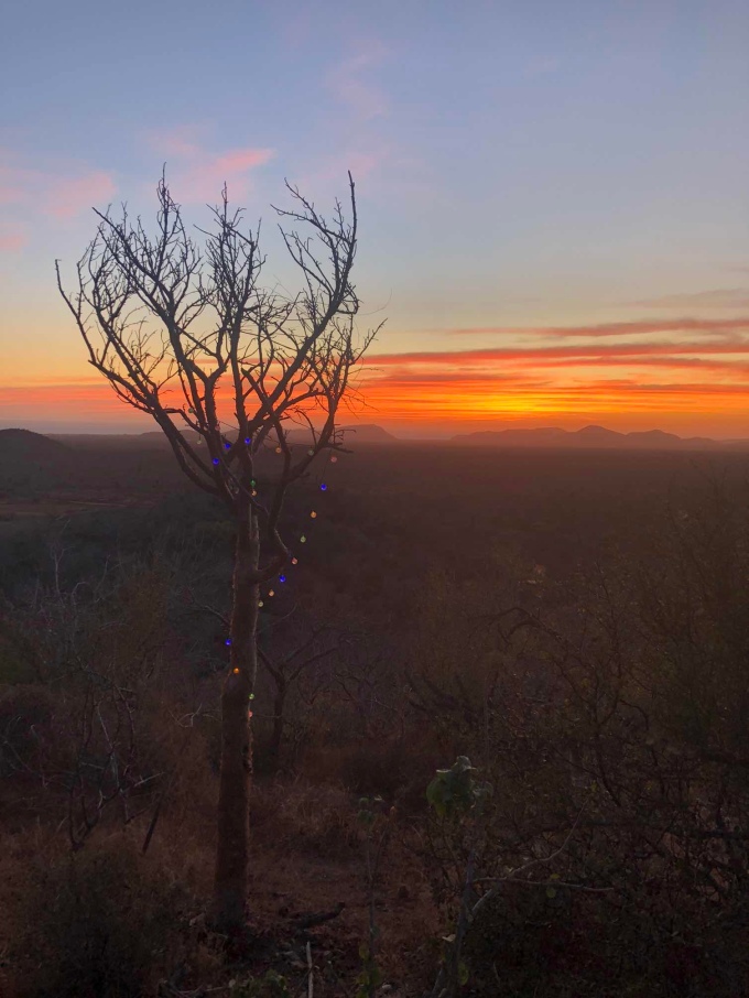 As darkness fell, we settled down for the evening’s entertainment. Hanno had retrieved an enormous cactus from somewhere and cut it up ready for the fire, night’s here are considerably colder than the days. To give ourselves a break in apocalypse themed films, we watched The Hobbit, our projector still partially set up from last time and the fire roaring next to us.