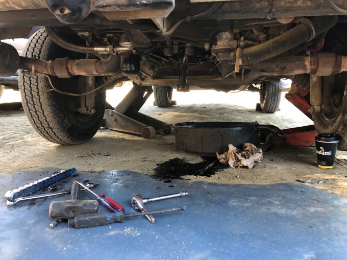 A quick check on iOverlander revealed a garage only a few minutes away. After speedily finishing up and paying, we drove off with what little oil was left. I located the mechanic and was happy when he spoke some English. After showing him the problem, we were soon parked up outside the garage.