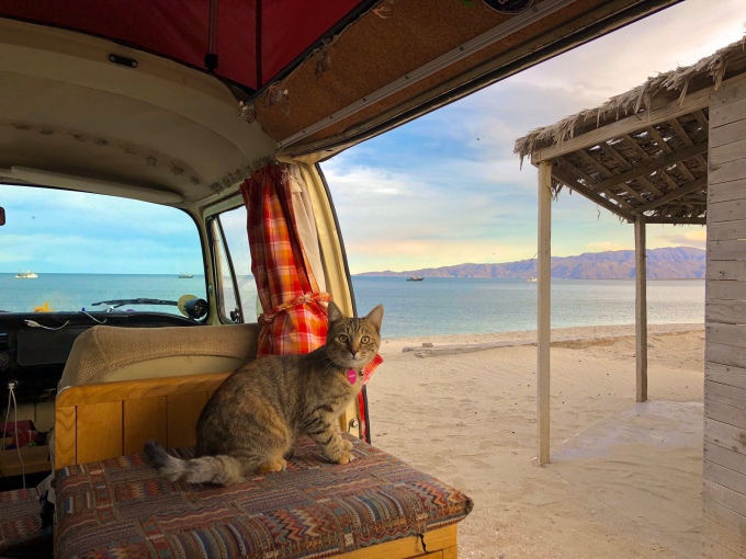 After some final packing of the truck, and still pondering the solar panel, it was nearly time to eat. We had agreed that we would cook as he was supplying the food. We made up some corn bread and a large bowl of spaghetti for us all, and ate it the relative spaciousness of his RV along with several bottles of wine. The rest of the evening was spent chatting away the time and finishing the wine, until it was late enough to call it a night. It was also the first time we had got access to the internet for some time, as he kindly let us use his Wi-Fi. Back for our second night on the beach, we risked sleeping in the pop top as the wind had died down.