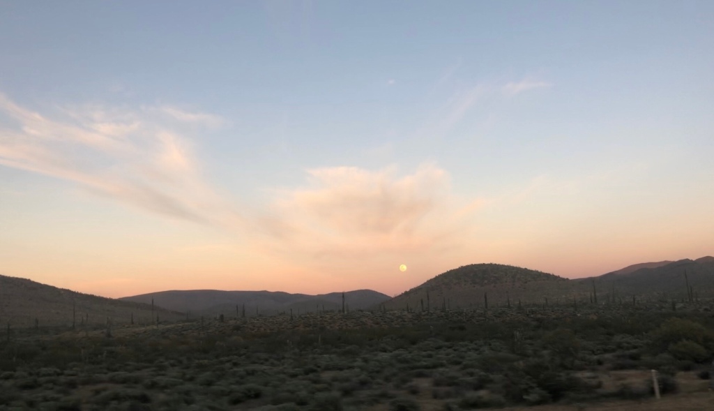 We also had a fantastic view of a near full moon as we drove the final section with the setting sun.