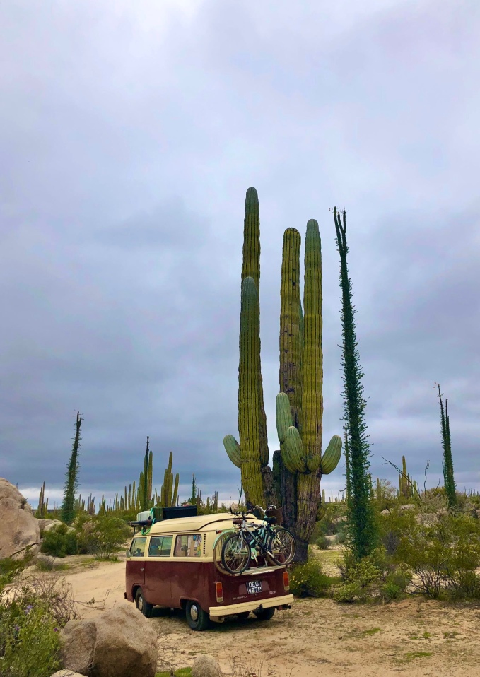The following morning it was time for both us and Dean to head off. He had given us a load of spare food to take with us as well as our left over spag bol and I spent a while trying to persuade all the new cans into our cupboard. In the end we had also decided to keep the solar panel at his and that we would pick it up on the way back as we had no way of using it without some modification and a new charge controller. We made some kind of vague plans as to when we were both likely to be back in the same place, before saying our goodbyes and hitting the road. Him north and back to the US, and us south towards Bahia de Los Angeles.