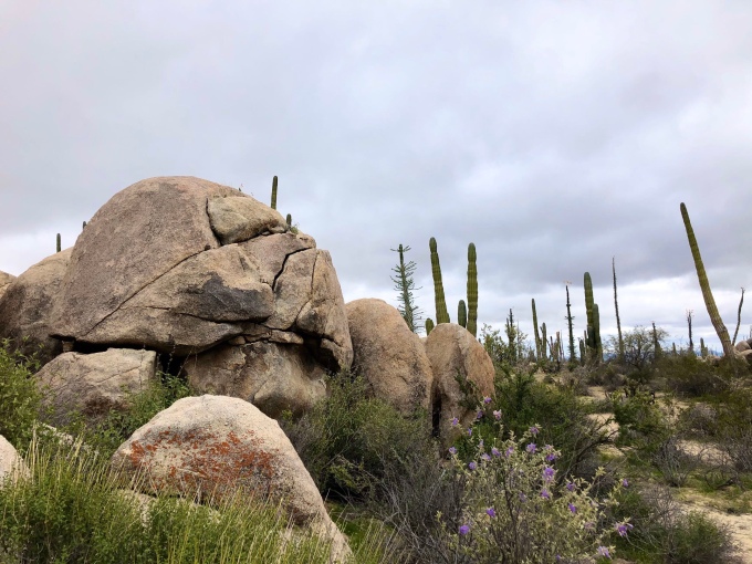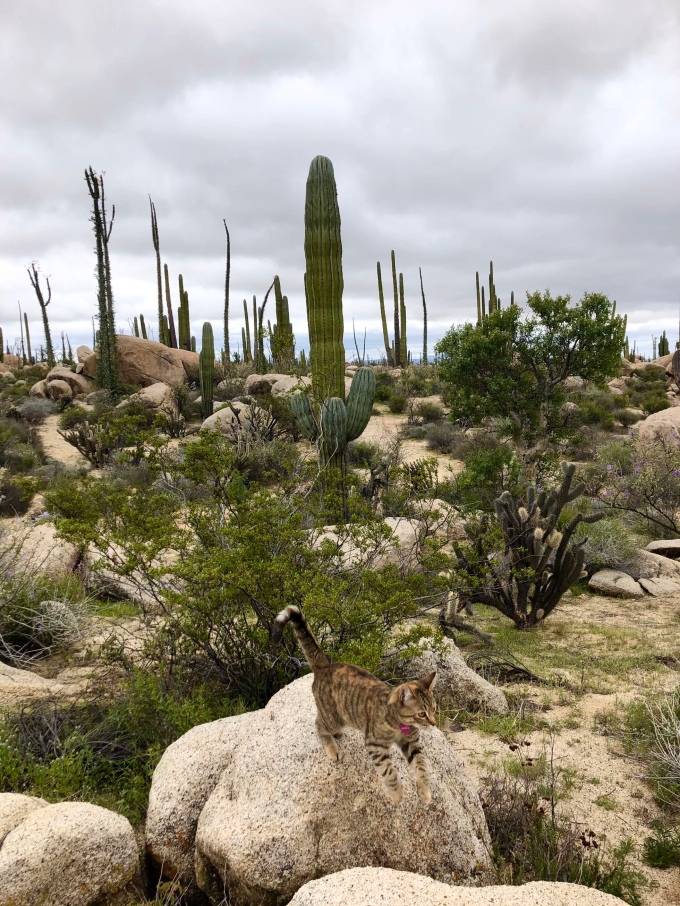 I did wonder whether Aimee would make the mistake of trying to climb one of the giant cacti, but fortunately some innate instinct stopped her. I’m quite glad is I didn’t fancy spending the morning picking spikes out of her paws! Instead she was happy to follow me around the surrounding area, while I tried to locate a suitable bit of dead cactus.