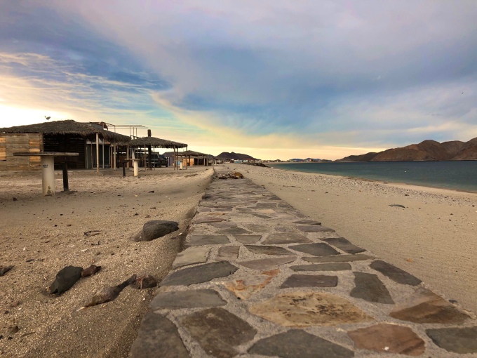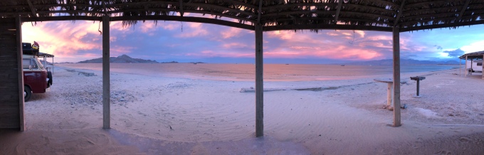 Eventually satisfied, we moved on. We were now continuing our drive from west to east, and planned to go a short way north once we had hit the east coast. We wanted to visit a place called Gonzaga Bay, while looked like a nice spot. As we later discovered, we were lucky with the roads. The road northwards used to be in a bad way, but it has just recently be redone, and is now a perfectly smooth highway which takes little time to drive. Soon enough we pulled into one of the cheaper primitive campsites that is located on the shore. Here you each get your own palapa (a small shelter) and pit toilet.
