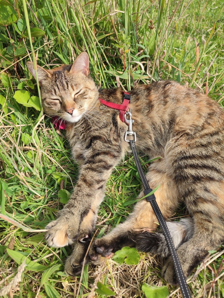 At the office, they were having a barbecue. We arrived out of breath, asking about Liz. They had no idea what we were talking about. We showed the a photo, asking them to keep a look out for her, before heading off to search the surrounding area. They thought this was hilarious. Every time we turned our backs, one of them would make a cat mewing noise, while the others laughed. For a second, I wished I had better Spanish to go and give them a piece of my mind, but all I could think about was Liz. We walked around all the paths in the vicinity, arriving back at the toilet block near the entrance. Here was another guy I didn’t recognise and after I explained I was looking for my cat, he showed me to an animal trail on the side of the road. It turns out he was the one who saw her. He showed me where it joined the road, and then across to the other side where the trail continued back into the undergrowth. I pulled out my phone and showed him a picture, asking if it was this cat. Was he sure? Was she wearing a bandana still? Yes he told, definitely her. Suddenly everything had changed, our plans of leaving the next day vanished and I allowed myself to hope that once again, everything would turn out for the best.
