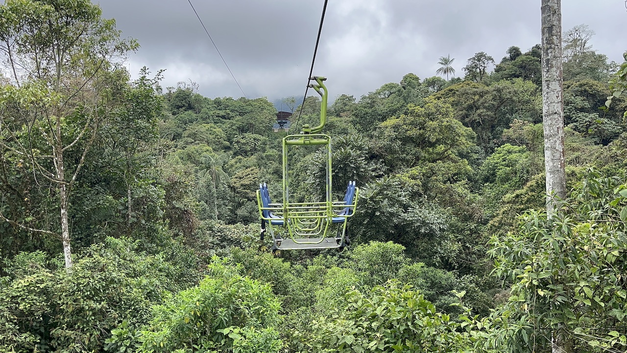 It was a pretty expensive ride at $8 return per person and the system operated with ski lift style chairs, rather than the pods we had become used too. We gliding along silently above the trees, a very long way up. I tried not to think about just how high we were as we came to a bouncing stop over the valley. They were clearly letting other people off or on. Then we jerked off again and soon the station at the end was in sight.