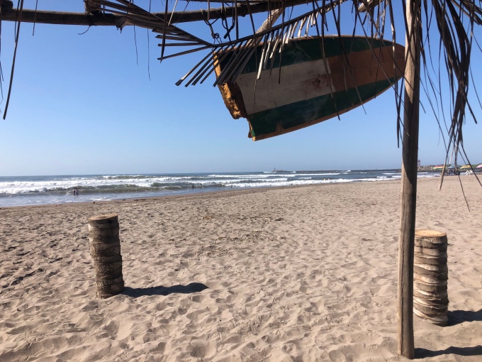 As I believe a lot of campers do, we planned out our next stop using the iOverlander app. This is pretty useful as it has a lot of spots to choose from and the reviews are helpful in picking somewhere suitable. We headed for Teacapan, a small town on the river that forms the border between Sinaloa and Nayarit. There seemed to be a nice campsite here on the lagoon, with surfing on the beach.