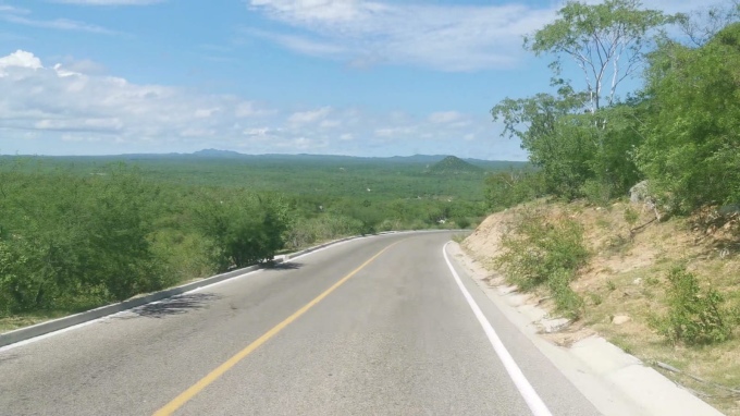 The desert around us was now a green jungle and it was a pretty drive next to the bright blu sea with the mountains of the Sierra de Laguna as a backdrop.