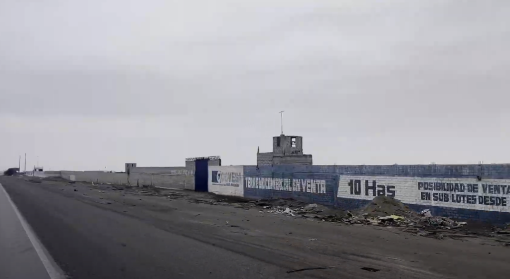 He soon returned with an adapter and we set off to find some more air. As we had spent longer than we would have liked to in the town and so we headed to the closest free spot. This whole coastline is rather odd. You drive down the road, with little to see either side except dunes. As you get to more populated areas, such as the strip before the town, the land at the side of the road has been divded up into plots by brick walls. Most are either painted with the message “Somos Peru” or “Propidad Privada”, however there is nothing else. On the occasional plot stands a lone, nice building. I get the impression that someone saw an advert for “Pacific Coast Beach Front Ownership Opportunity!!!” and blindly bought it, not realising they were actually purchasing something that looked like it had come right out of the wastelands of Mad Max. Nevertheless, they’d committed and so built they nice home overlooking the surrounding piles of rubble and waste.