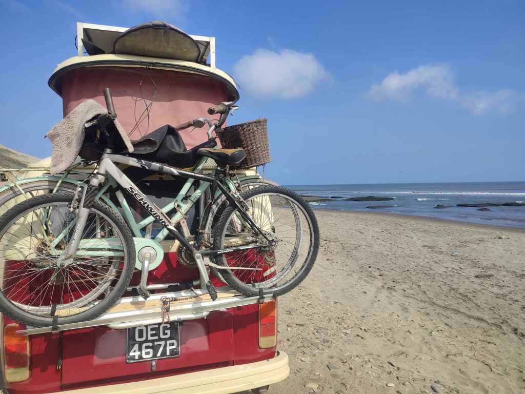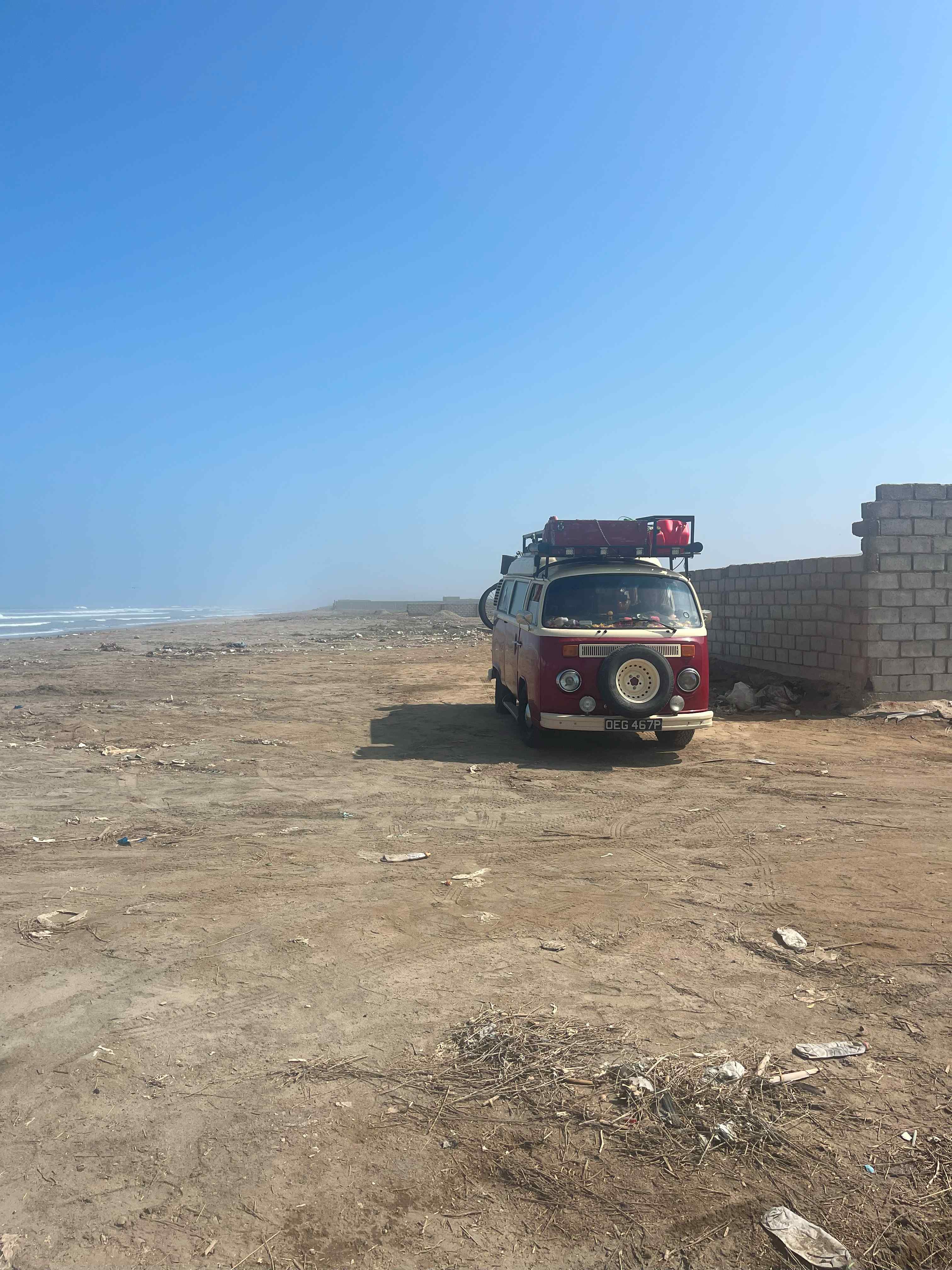 On the whole though, these lots seemed mostly abandoned. They had their walls, but no buildings. The land inside as much of a wasteland as the street on the outside. We drove down the side road between some of these plots and parked up on the beach behind the outer wall. It was pretty horrible really. The first thing that hit me was the smell of rotting flesh. It seems there is some kind of bird flu going around and the beach was littered with the corpses of birds in various states of decay. Still, there wasn’t too many other options and it was getting late. As if the rotting birds weren’t bad enough, the beach was also covered in rubbish too. So while I set up the van, Lee grabbed the shovel and set about burying all the dead birds around us. Not only for the smell, but also in case the cats showed any interest. This did make quite a difference, and after he had spent the entire evening burning the rubbish around us, it was almost ok. It was only going to be for the night and while it may not have been the nicest outside, it was very quiet during the night and we slept well.