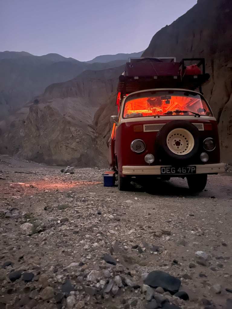 I had broken the bad news to Lee about the oil leak and we made sure that we had both spare engine and gear oil before we headed up into the mountains. The canon is beautiful, and barren. We needed to make sure we had everything we needed with us for a few days. After a few hours of driving, with the last of the afternoon light we reached the final village of Chuiquicara.