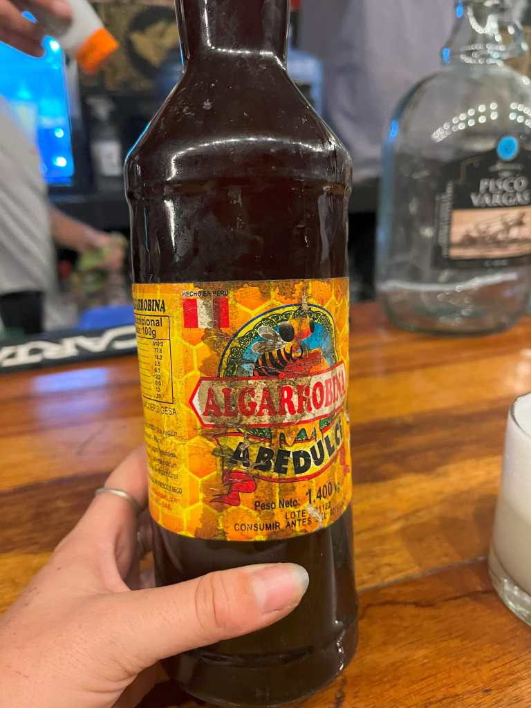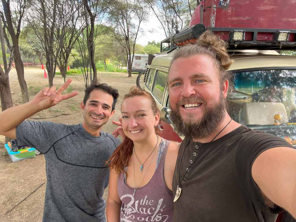 Once we managed to extricate ourselves from the traffic, we drove out a short way to reach Porta Verde which marketed itself as an ‘Eco Country Club’. We spoke to Jair (I think, while Lee is adamant it’s Javier), he told us that it was 40 soles a night, but that it would also be cheaper if we stayed longer. We thought we’d stay a couple of days. He asked us whether our van would be able to cross a rather deep ditch to the spot he had pointed out under some trees, on the side of a football pitch. Gingerly we edged Ruby in and out of the ditch to park up in the shade. Our host brought us a huge hook up cable as despite the fact that we have three, all ours combined still weren’t long enough to reach. This was perfect as it was hot here and to be able to park in the shade and run off mains power was a luxury. He showed us to a sparkly new toilet block and told us apologetically that there was a shower, but it didn’t have a curtain yet. We were free to use the pool whenever we wanted and there was also a bar and restaurant on site. We spent a moment setting up the van and releasing the cats before Jair returned and told us that, Gonzalo, owner would like to meet us. We headed over to the bar and met the owner, drinking with a friend of his. The friend, whose name escapes me brought us two beers and we sat and chatted about our trip, alternating between Spanish and English. The beers kept coming and an introductory drink turned into a long night, it was the early hours of the morning before we headed to bed.
