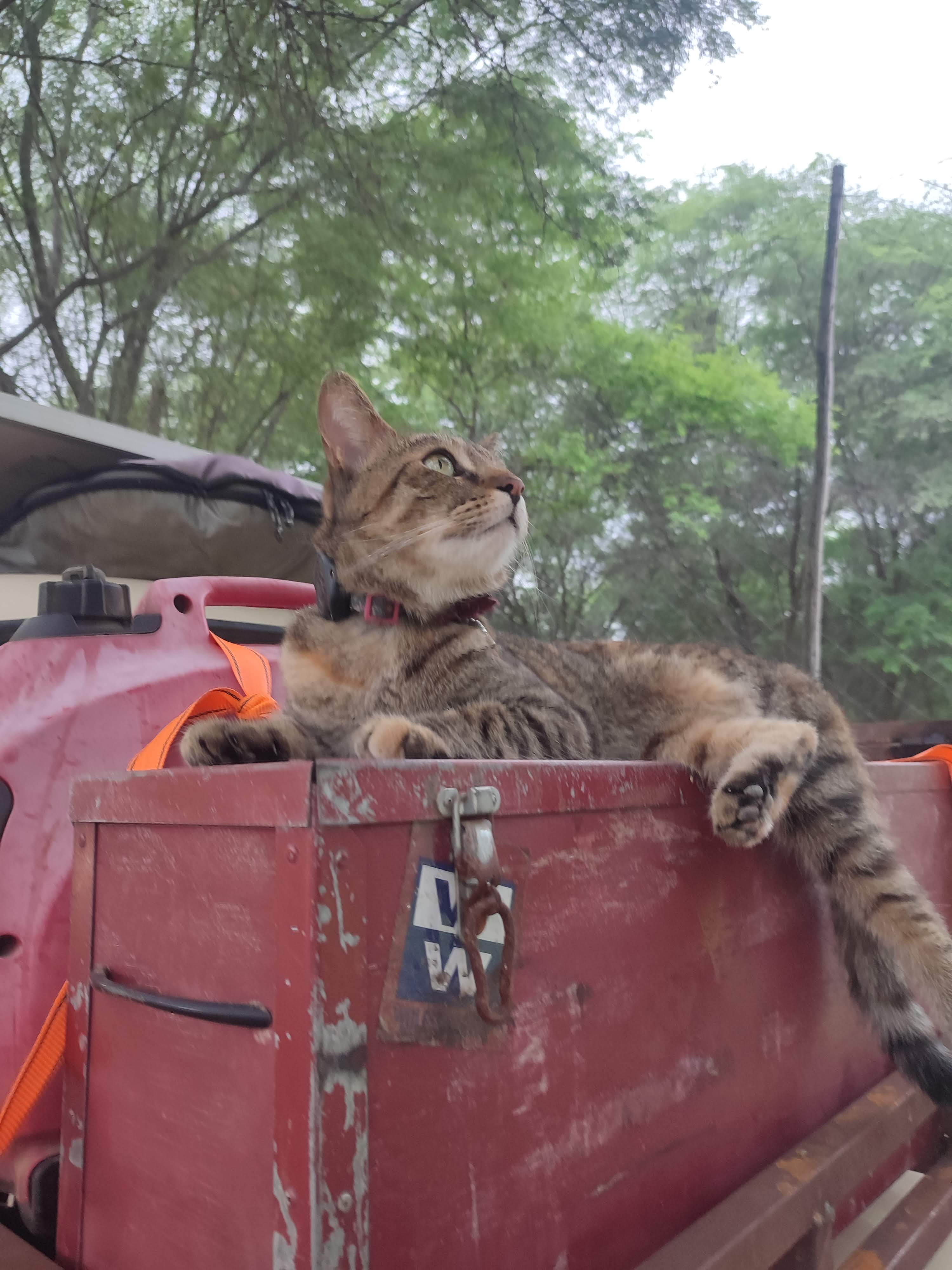 We had planned to go back the next day, but when we awoke that morning, Aimee was nowhere to be found. We had been trialling out air tags on the cat's collars with mixed success; in the week she had been only a few metres away and we hadn’t found her. The only information we had now was that she hadn’t been near the van since around 6.30am. This is unlike her. While she does have a tendency to bugger off in the middle of the day she is always there in the morning to whine for her food, only to usually go out again without eating it. We weren’t overly concerned; Gonzalo has ten cats, there was no traffic. We tried to find her but no luck. By the time it had reached late afternoon though, we were not so calm. Having lost Lizzy we are now horribly paranoid about it happening again. One of our biggest regrets is not acting soon enough and while we had spent hours calling Aimee, there was little we could do. The undergrowth was thick, overgrown and near impossible to search. We spoke to the neighbouring camper in case she had climbed in there, something she also has a habit of doing, but she was nowhere to be found. It was also unlike her to be gone this long and while we couldn’t do much to find her, we couldn’t think of anything else. We sat there saying reassuring things to each other while ultimately each having a small internal breakdown. We couldn’t do this again. What kind of people lose two cats? I put our torches on charge, there was no way either of us would sleep until she was found. And then, just after 6pm, as we searched near the toilet block, my phone registered her tag. A second later, she wandered out of the bushes, completely unfazed. I have never been so relieved to see her and we resolved that we must get better trackers. Our stress levels couldn’t handle this for the rest of the trip. Now at least we could relax, and once more think about welding.