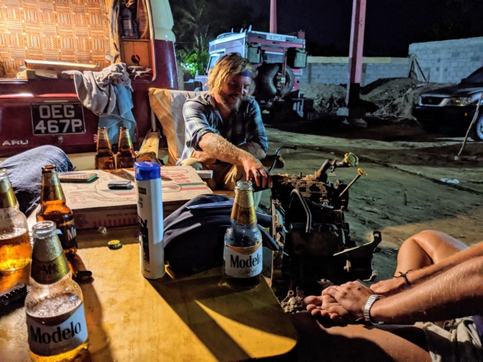 Hanno and Kikki were still at Nine Palms, meaning that the only way to communicate with them was to message Clem to message them on their satellite phone, a rather longwinded process. With the new engine scheduled to be delivered between 7-8am the following morning, we asked Jaro for some help.