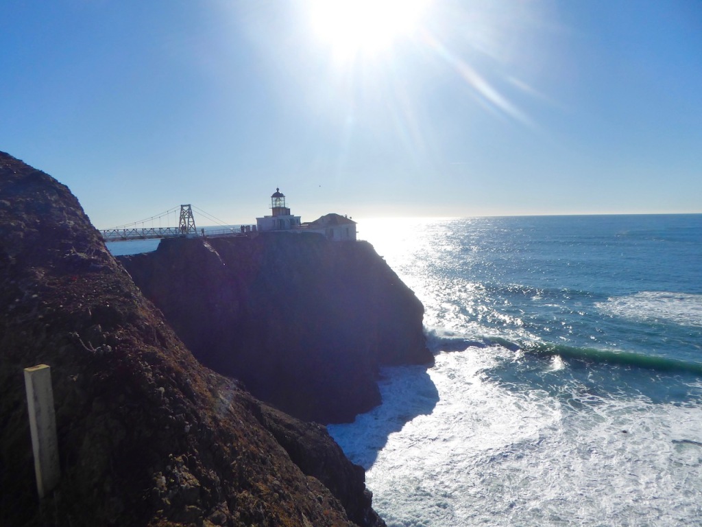 Upon returning to the cars, we began to our journey up towards Marin headlands. We were going for a short walk here before heading further north to see some of the famous redwoods. We went for a short walk around the shores of Rodeo Lagoon, before driving up and over the headland to park at the lighthouse. Probably one of the steeper roads we have driven so far, which is saying something considering we are in San Francisco. The sign warned of a 18% gradient, and as Ruby peered over the crest of the hill we descended very slowly in 1st gear, engine braking to the max! There was an incredible view from the top through, so it was worth the slightly scary descent.