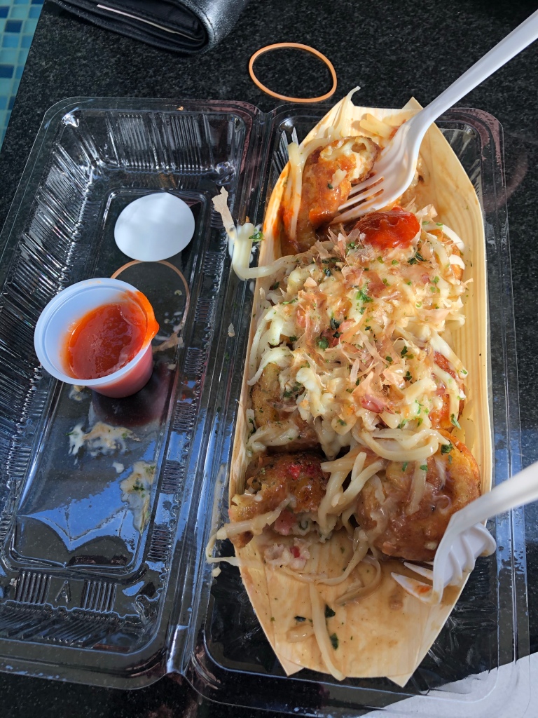 Deciding we needed sustenance we looked up what might be some good local food. Walking through the mall we settled on some street food from Takoyaki Yama-Chan. The dish itself was called Takoyaki and it was a kind of a fried ball of mush with octopus, which was actually a lot nicer than I’m making it sound. If I’m eating octopus, it must be good!