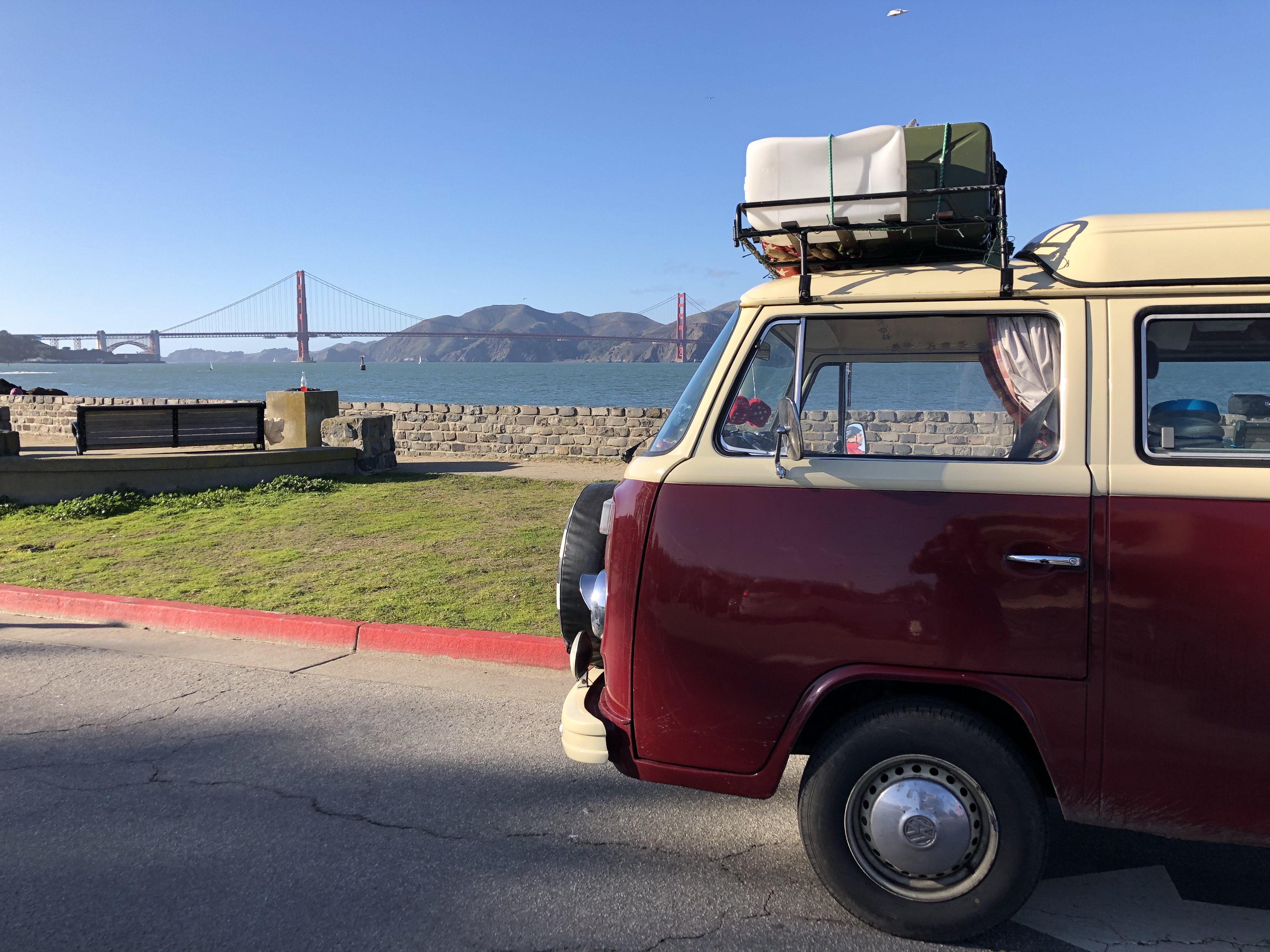 From here we headed back to our little car park spot just in time for dinner and to complete our musical chairs style camping spot. The downside of this is that we have to leave Safeway carpark by 8am, or the security start getting a bit funny about it. While not overly early, when you take into account packing away the van and so on, it means a lie in isn’t exactly on the cards. As we had to be on the road anyway, the following morning we decided to head back early to Fort Point to get some proper pictures of Ruby in front of The Golden Gate Bridge.