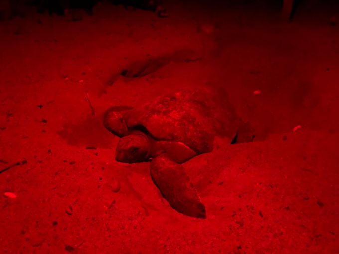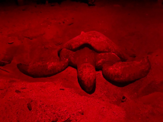 It was a surprise to see just how much the light affected her, and it was pretty incredible to lead a turtle back to the sea with just a torch. It’s sad to think in some places with the bright lights of sea front houses, that some turtles get completely lost and can’t find there way back to the sea. We watched as a wave washed over her, and then she was gone. It was a pretty magical experience, and incredible that we were the only people there to see it, she was our turtle. We put a marker on the nest so that we could tell people the next day that there were some eggs buried, hopefully they could move them to the enclosure. Now past midnight, we headed to bed.