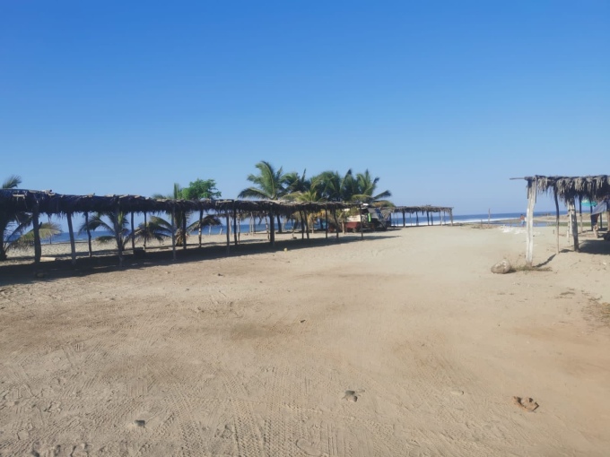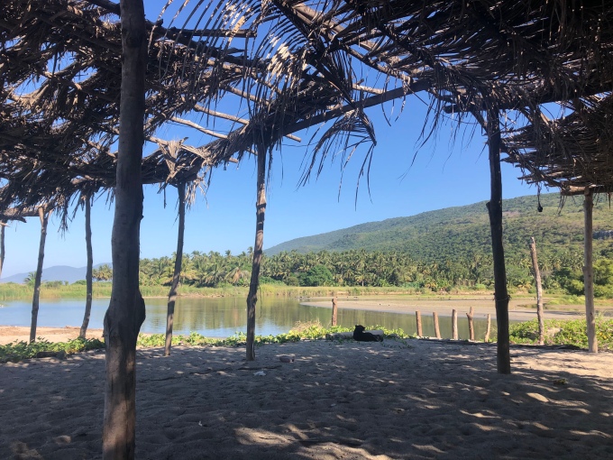 Trying not to think about it too much, we continued on, turning off the main road. La Ticla is small and unspoilt. There’s a few local restaurants and houses, and it was quite busy as the Sunday we arrived was a national holiday. We enquired about camping, and were told it was 50mxp per person per night, we pulled up right onto the beach, with a large palapa and the river to our right.