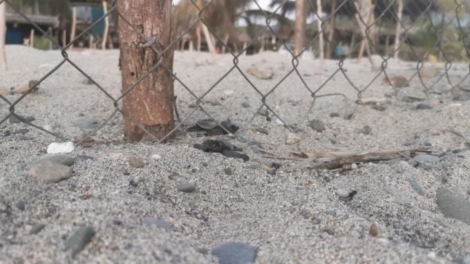 That evening, even more hatched. Some people came over and put some wood around the wire so the turtles couldn’t escape. He said it was better that they were released in the morning, I always thought it was the opposite but who am I to question them really. I assumed that they had the best interests of the turtles in mind, and by the time we got out of the camper the following morning they had all made it to the sea.